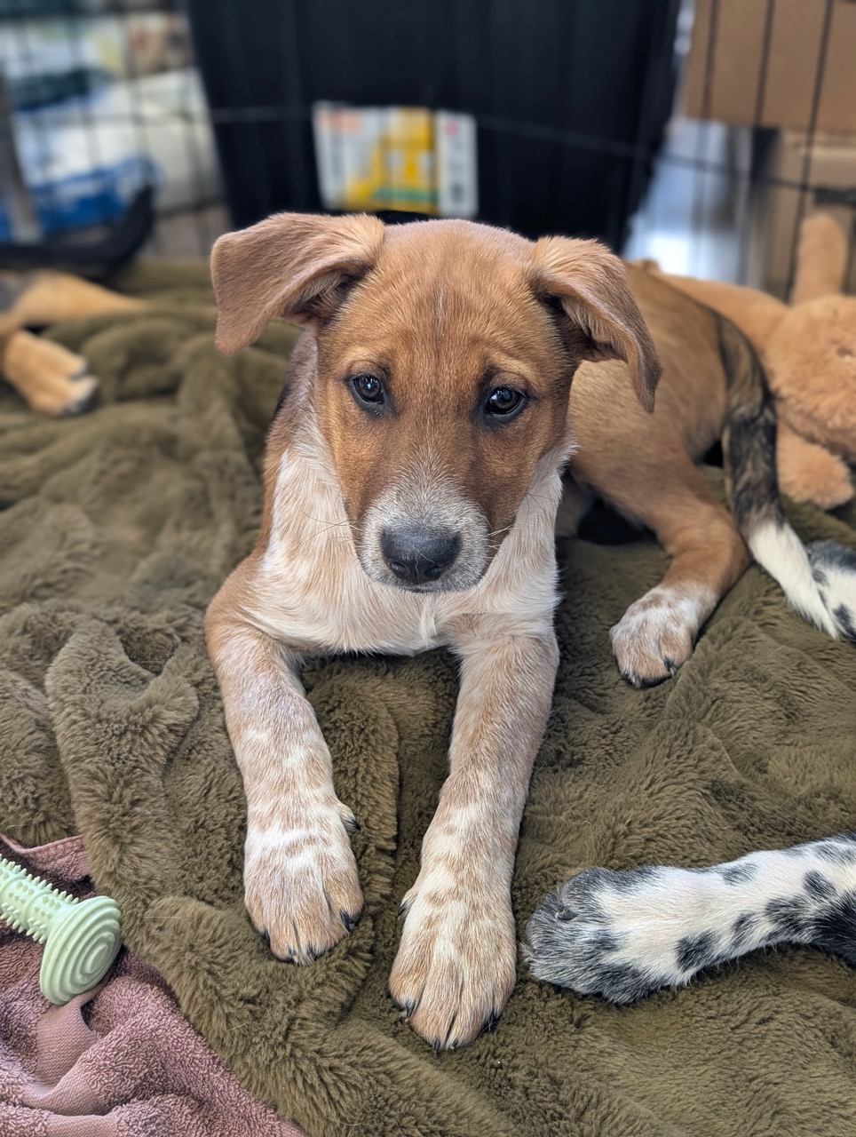 Meet Myra 💕 Myra is a 12-week-old female puppy with all the brains and bounce you’d expect from an Australian Shepherd mix! Her mama is around 45 lbs, but Miss Myra is likely going to be a bigger girl once she’s all grown up. This sweet and silly girl is full of life. She’s very [...]